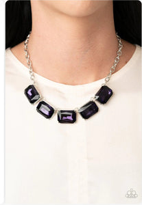 Featuring regal emerald style cuts, an oversized collection of purple rhinestones dramatically link below the collar for an icy finish. Features an adjustable clasp closure.